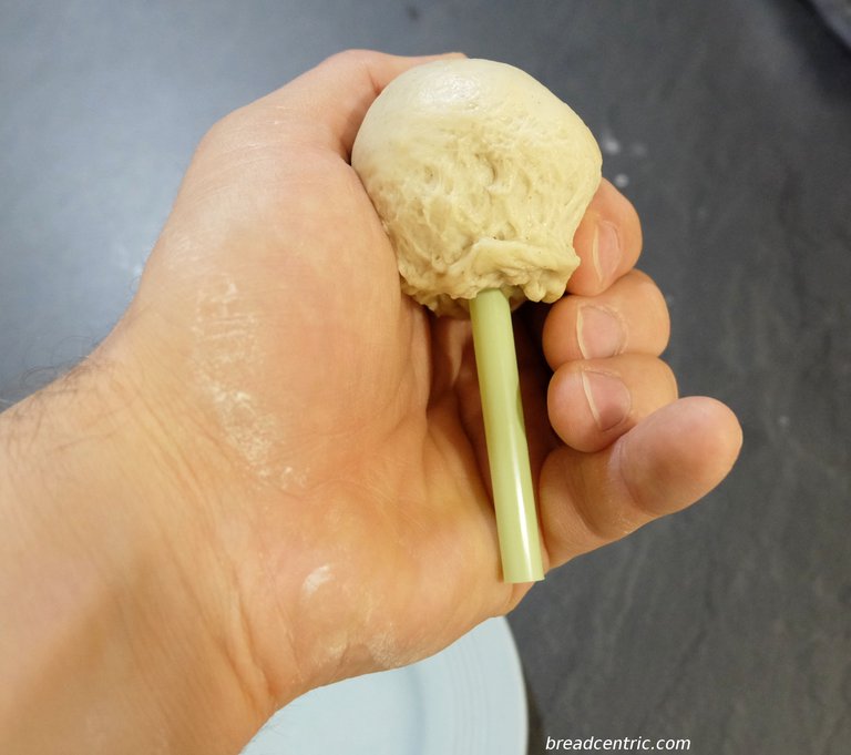 Note that it’s quite sticky, yet it doesn’t stay on your hands. By this time it’s quite well stretched and exercised, so it won’t detach from the whole ball. This is pretty much similar to what you get with a well kneaded dough.